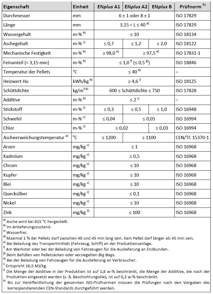ENplus-zertifizierte Pellets müssen die Grenzwerte für die prüfpflichtigen Eigenschaften gemäß ENplus einhalten.