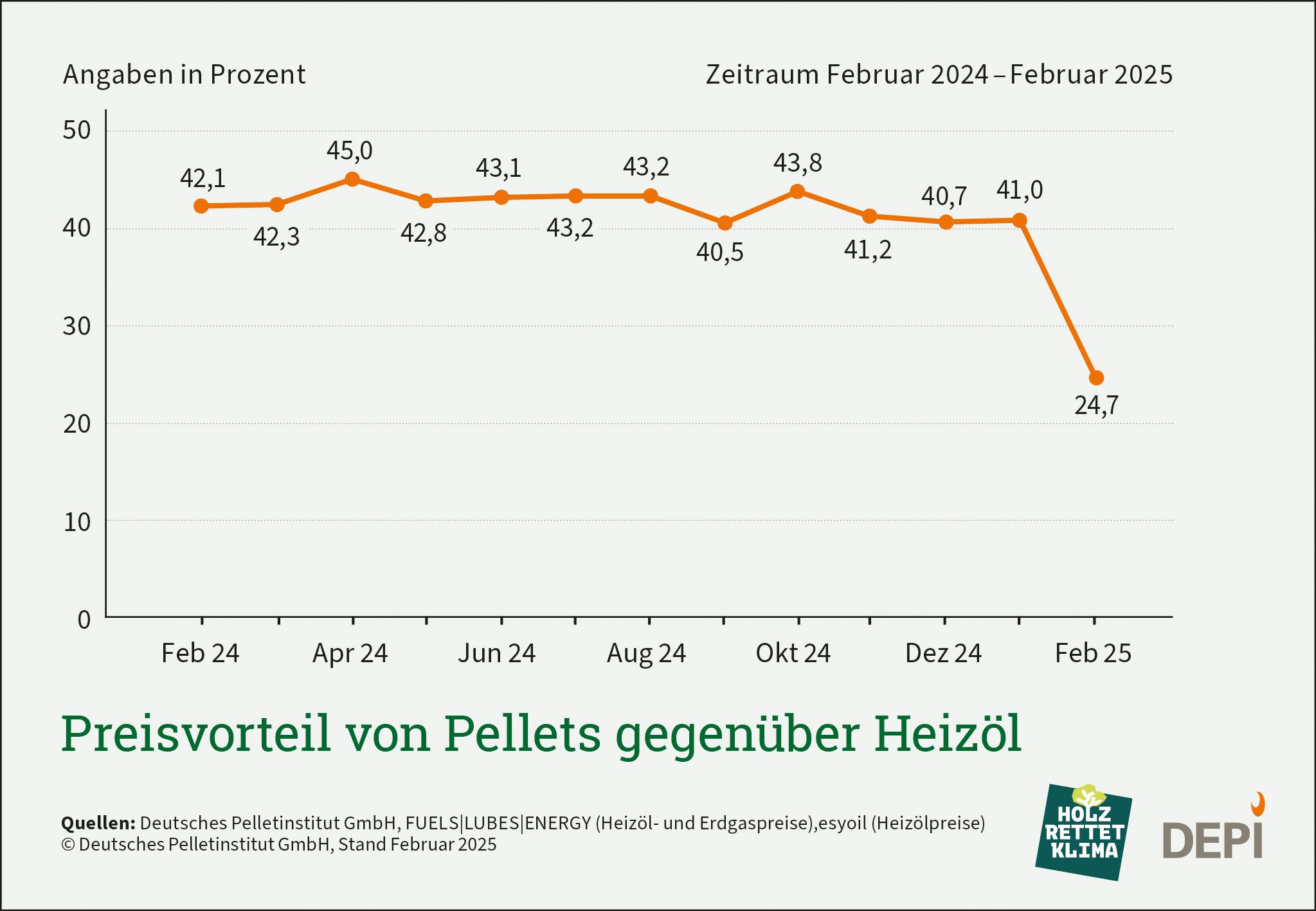„Auch wenn der Winter 2024/25 keine extreme Kälte brachte, sorgte das durchgehend kühle Wetter für einen konstanten Heizbedarf. Besonders im Januar führte das dann zu einem sprunghaften Anstieg der Nachfrage“, führt Bentele weiter aus. „Trotz dieser Entwicklung bleiben Pellets durchgehend günstiger als Heizöl und Erdgas.“ Gleichzeitig rät das DEPI Verbrauchern weiterhin, erst nach der Heizperiode wieder Pellets zu bestellen und einzulagern. Mit diesem in der Vergangenheit weit verbreiteten Vorgehen profitieren sie von den typischerweise günstigeren Preisen im Frühsommer.